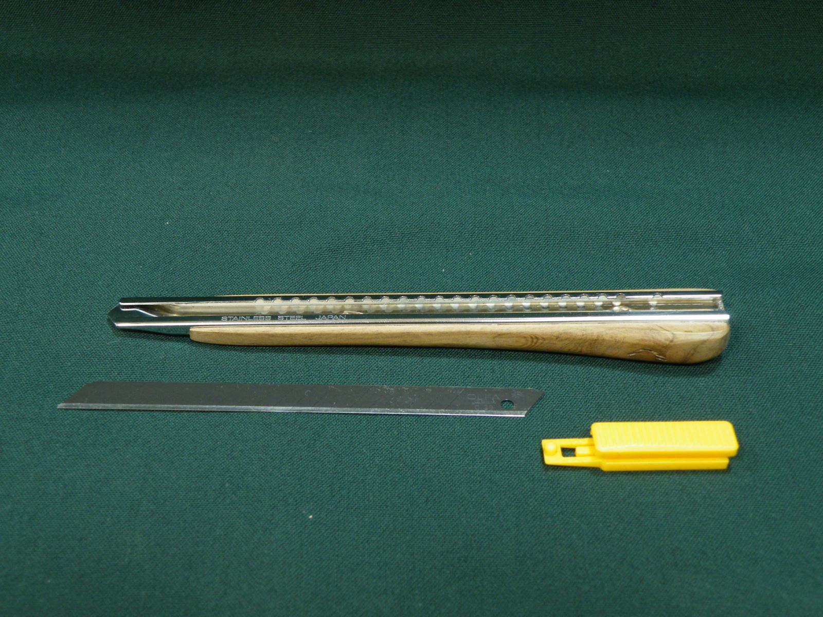 ①機構:オルファ241B(セミロック式・筐体:SUS磨き加工・刃折:なし)②替刃:職専替刃ロング24等(通常A型カッター刃も可)
